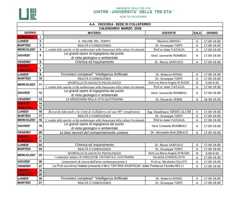 L’inaugurazione avviene presso il Liceo Scientifico Guglielmo Marconi, prima sede della Unitre di Colleferro.